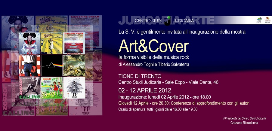 LUNEDI' 2 APRILE 2012 alle ore 18.00 presso le Sale Expo del Centro Studi Judicaria a Tione di Trento verrà inaugurata la mostra iconografica intitolata "Art&Cover", la forma visibile della musica rock, che si avvale di 112 quadri con le più significative copertine di dischi che hanno "vestito", contraddistinto, segnato ed accompagnato la musica rock dalle origini ad oggi.