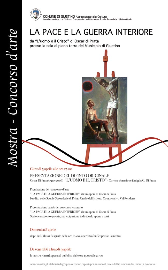 Dimostrando come l'arte non abbia confini espressivi e come un'idea possa generare piccoli capolavori in campi diversi, interessare e coinvolgere molte persone e contribuire alla crescita culturale di una comunità, a Giustino l'assessore Carmen Turri è riuscita a trasformare una tela "L'uomo e il Cristo" di Oscar di Prata, omaggiato al Comune dai parenti dello scomparso pittore bresciano, nel motivo ispiratore di una serie di iniziative che hanno caratterizzato la vita culturale del paese e dei suoi ospiti lungo tutto il 2012.